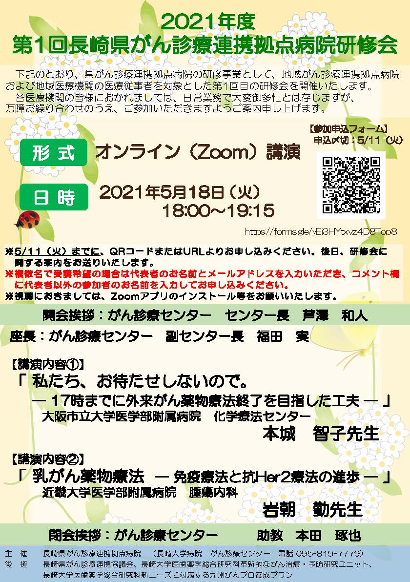 2021年度 第1回長崎県がん診療連携拠点病院研修会が開催されます。