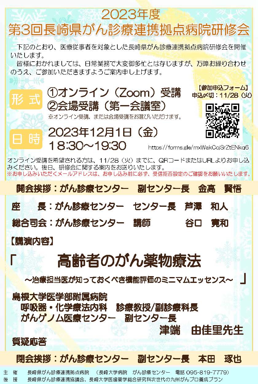 2021年度 第3回長崎県がん診療連携拠点病院研修会が開催されます。