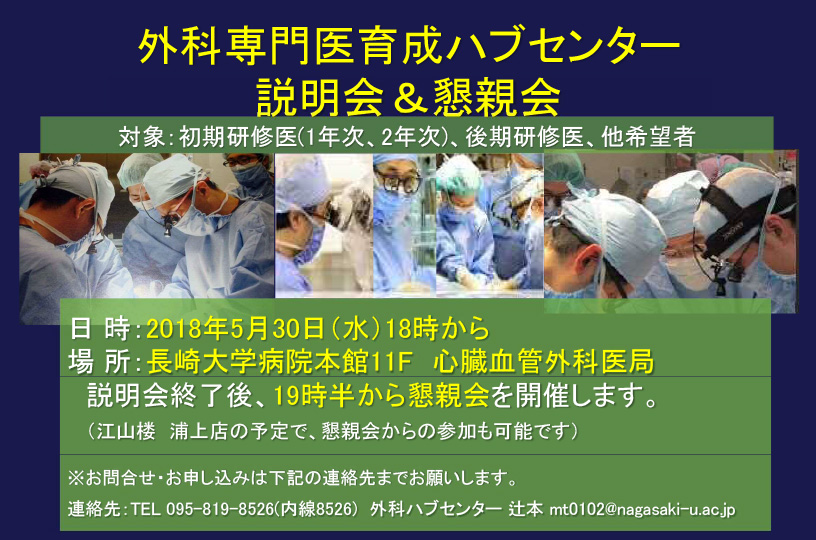 | 連絡先: | TEL:095-819-8526 外科ハブセンター 辻本 mt0102@nagasaki-u.ac.jp |
